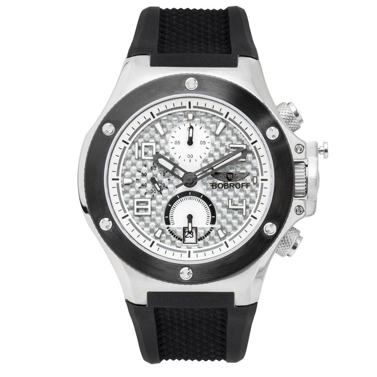 Type of mechanism: QUARTZ.Display: ANALOGICAL.Material Of Case: STEEL.Colour Of Case: BLACK.Material Of Bracelet: RUBBER.Colour Of Bracelet: BLACK.Dial Colour:GREY.Glass type: SAPPHIRE.Clousure: BUCKLE.Water resistence: 10ATM.Diameter dial: 43MM.Special Functions: