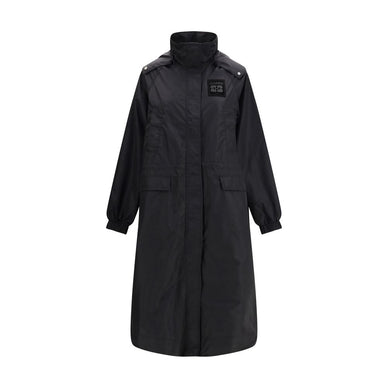 The Flyweight Banana Graphic Long Parka by GANNI in black combines functionality and modern style in a sleek longline silhouette designed for full coverage. The lightweight yet protective construction is enhanced by a high-neck hood that offers added warmth and weather protection, while multiple functional pockets provide everyday practicality. A playful banana graphic at the back adds a distinctive, contemporary touch, balanced by subtle GANNI logo detailing that reinforces the brand’s identity. A versatile outerwear piece, ideal for staying warm and dry in wet conditions.