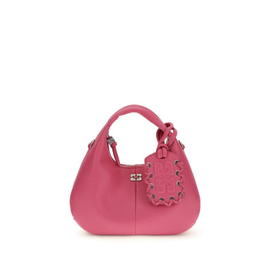 The mini Hobo Handbag by Ganni, with its grainy texture, combines elegance and practicality in a compact format. Featuring a top handle and adjustable and removable shoulder strap, it is embellished with the butterfly logo and the GANNI logo embossed on the back. The zipper closure, metal studs engraved with the Ganni and Butterfly logos, and mirrored label complete the design, while the interior offers a compartment and a flat pocket for cards, perfect for organizing your essentials in style.