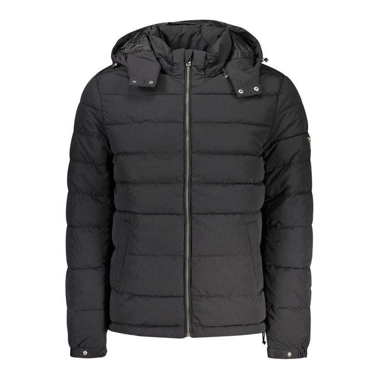 Unleash your inner fashionista with this sleek GUESS JEANS long-sleeved jacket. Tailored for the bold and modern, it comes with a chic removable hood that caters to your style whims. Boasting a host of practical features – including 2 external and 2 internal pockets – wrapped in the high-quality 100% Poliammide, this jacket is your shield against the elements with its wind and water-resistant capabilities. Finished with a sharp applique logo, this is more than a jacket—it’s an emblem of style, tailored for the trendsetters.