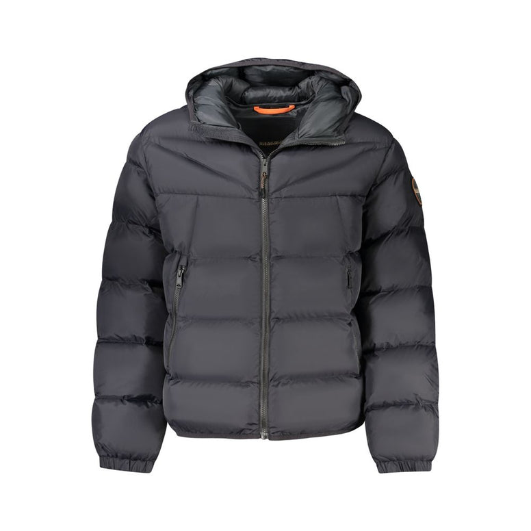 Elevate your outerwear collection with the NAPAPIJRI long-sleeved hooded jacket. Exemplifying contemporary cool, this relaxed fit marvel fuses practicality with style, boasting two external pockets and an additional internal pocket for your essentials. The sleek black color elevates its versatility, while the striking applique and bold zip detailing scream urban chic. Proudly constructed with 70% recycled materials, this jacket is a testament to sustainable luxury.