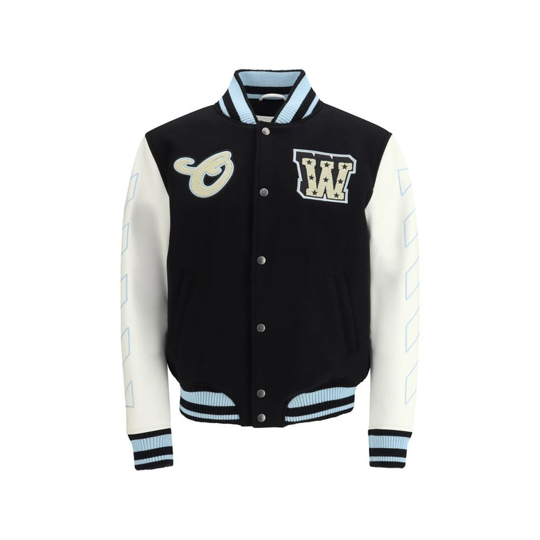 The Varsity Star Logo Jacket by Off-White is a garment that perfectly blends classic varsity style with contemporary details. Made from a combination of leather and wool, this jacket offers a sophisticated look and a comfortable fit. The star logo applied to the sleeves and body of the jacket defines its bold aesthetic, while the use of premium materials ensures quality and durability. A distinctive and modern design, perfect for those looking for a garment that combines sportiness and elegance.