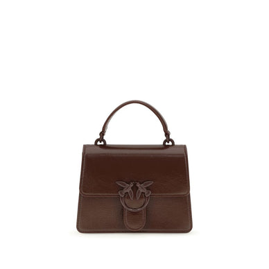 The Love One Top mini Handbag by Pinko is made from shiny vintage-effect leather and features a structured trapezoidal shape. It has a fixed handle and a removable leather and chain shoulder strap, offering three ways to wear it. The magnetic button closure is embellished with a Love Birds Diamond Cut buckle, while the cotton-lined interior features a logoed zip pocket. An elegant and versatile design, perfect for any occasion.