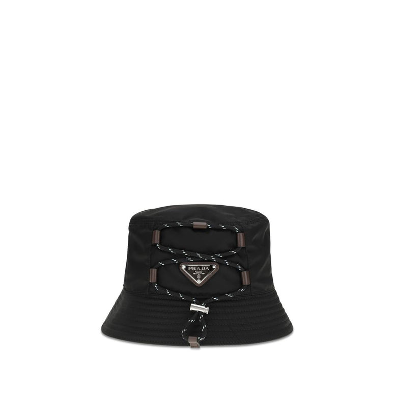 The nylon Bucket Hat by Prada blends classic urban fisherman style with outdoor-inspired details. Crafted from sustainable Re-Nylon, it is embellished with the iconic enameled metal triangle logo. Lightweight and practical, this accessory combines functionality and contemporary design, with care recommendations designed to preserve its quality and reduce microfiber dispersion.